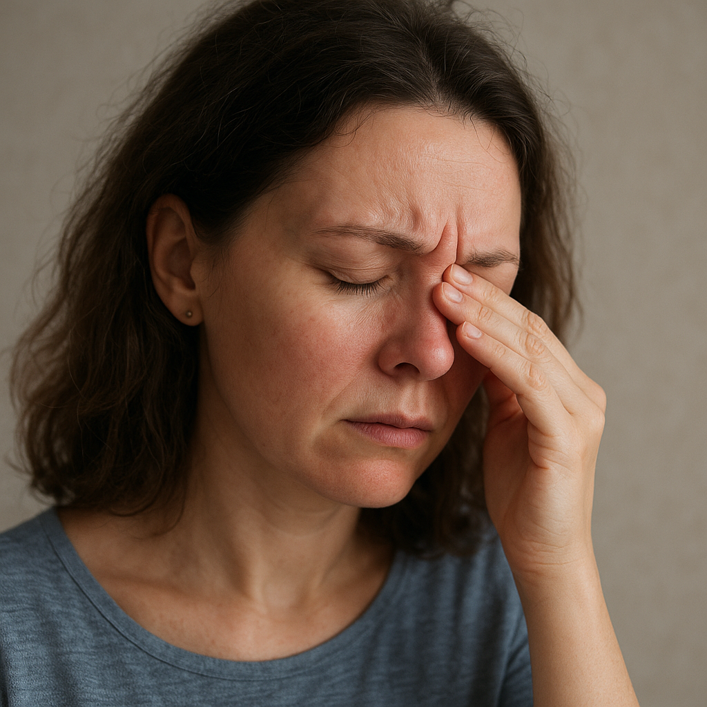 - Irytacja – zwiększone łzawienie lub częste mruganie.